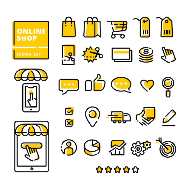 オンラインショップアイコンセットモダンなフラットラインPremiumベクトル素材。