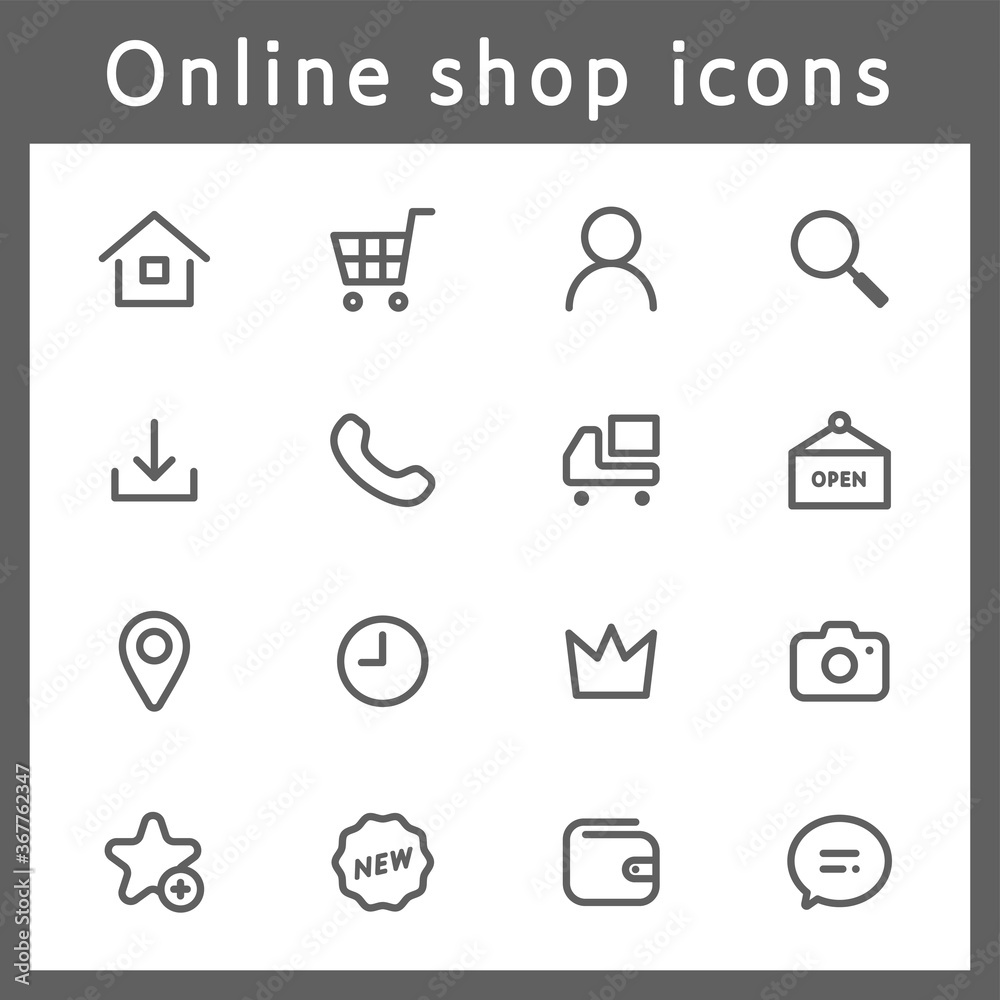 Online Shop Icon set Vector For Web, Presentation, Logo, Icon, symbol,button 4262793 Vector Art at Vecteezy。