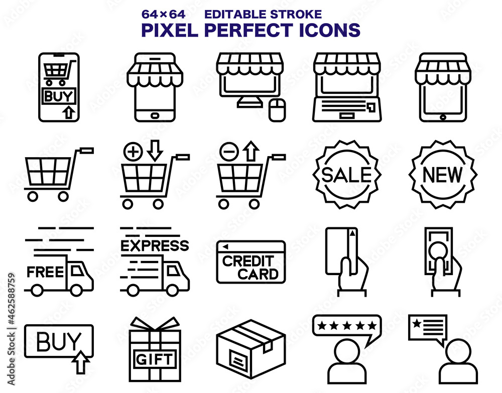 Ilustração do Stock ショップサイトのアイコンのセット 通販 おしゃれ 買い物 ショッピングAdobe Stock。