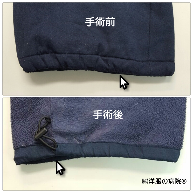 手術内容:裾にゴムを入れて調節して留めれるようにしてほしい。