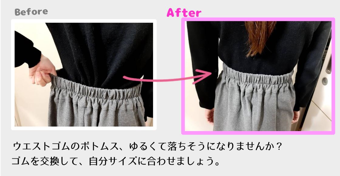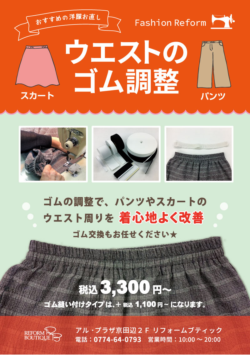 ウエストゴム交換お知らせお直しコンシェルジュ BIGMAMA ビック・ママ。
