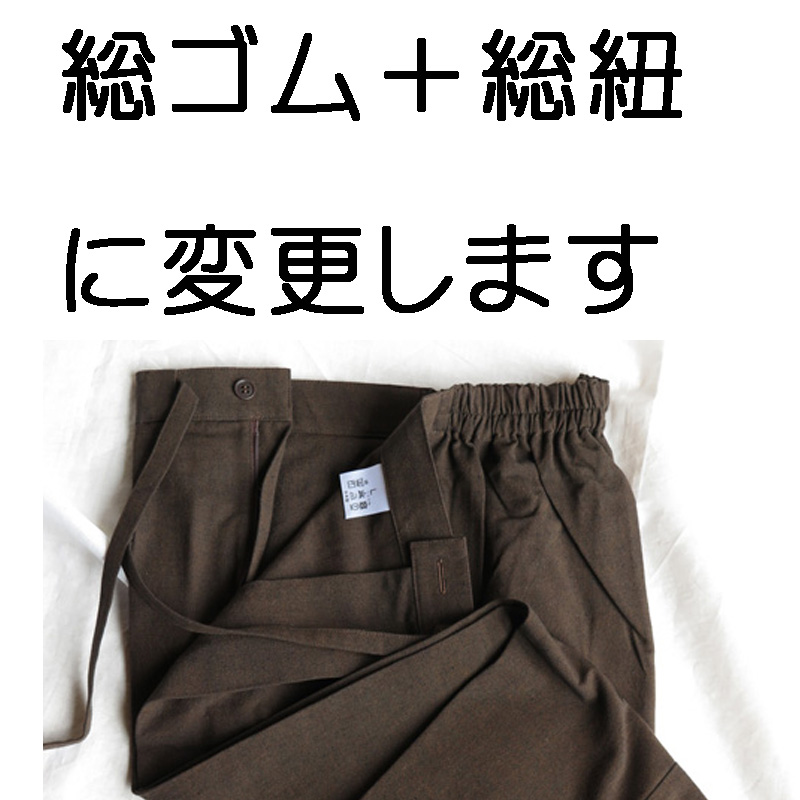 加工代 作務衣のズボン ウエスト回りを、総ゴム+総紐に変更加工。