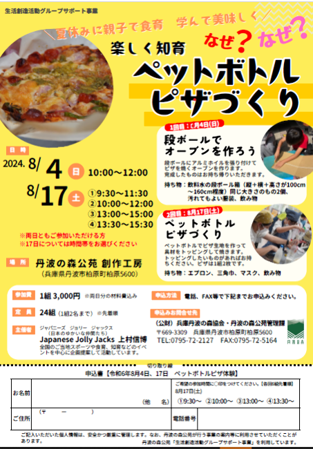楽しく知育ペットボトルピザづくりイベント丹波篠山市・丹波市の丹波地域の観光や旅行の魅力を紹介する公式観光ポータルサイト。