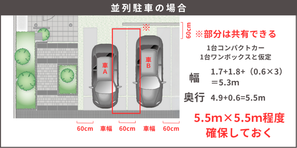 駐車場寸法は、1台あたり2.7m×5.5mは必須!?建物位置をズラしてでも確保すべき理由も解説庭ファン。