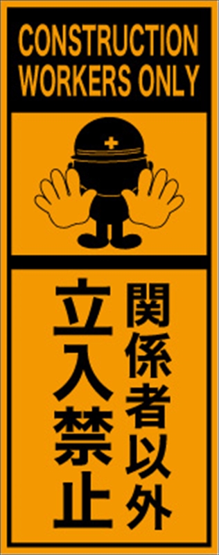 工事看板立入禁止英語表記入り プリズム蛍光高輝度オレンジ W275mm×H1400mm鉄枠付安全標識 工事中看板EPX-007保安用品のプロショップメイバンオンライン。