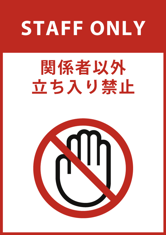 関係者以外の立ち入りはご遠慮ください 立入禁止 スタッフオンリー 床用 路面用 関係者以外立入禁止 スタッフオンリー のマーク 縦、文字あり、日本語・ 英語 のイラスト素材197251359- イメージマート。
