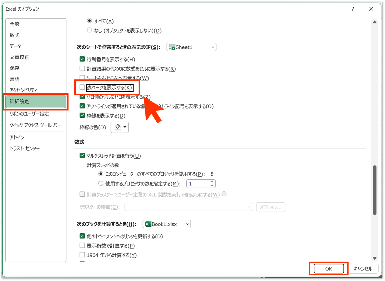 改ページの点線や印刷範囲の実線を表示しない:Excelの基本操作。