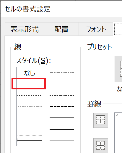 Excel 表の罫線の一部を点線に変更しよう!無料のオンラインパソコン教室。