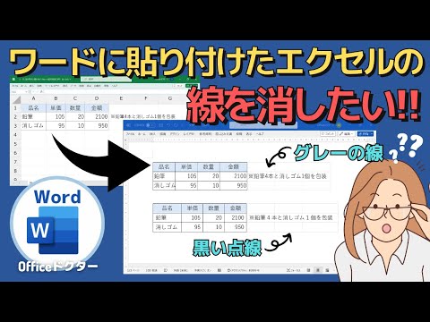 ワードに貼り付けたエクセルの線を消すには?形式ごとの手順を紹介。