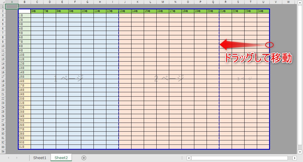 エクセル印刷がおかしい時の対処法改ページの青い枠・線の使い方。