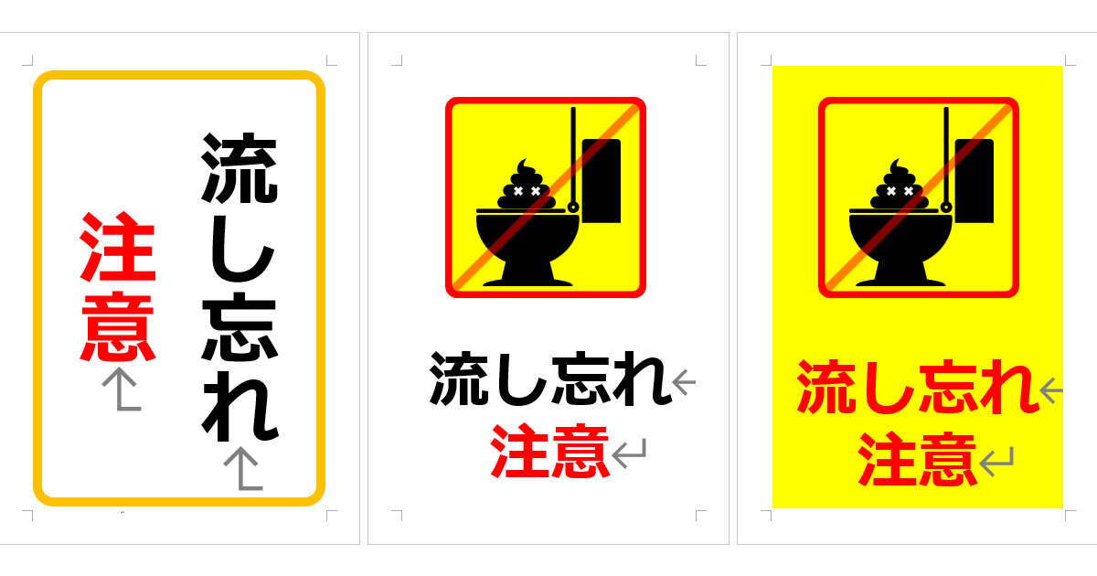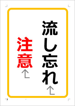 流し忘れの注意の張り紙 Office Word PDF形式Wordで張り紙。