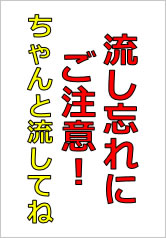流し忘れにご注意!ちゃんと流してね ^_- -☆の貼り紙フリー貼り紙のペラガミ.com。