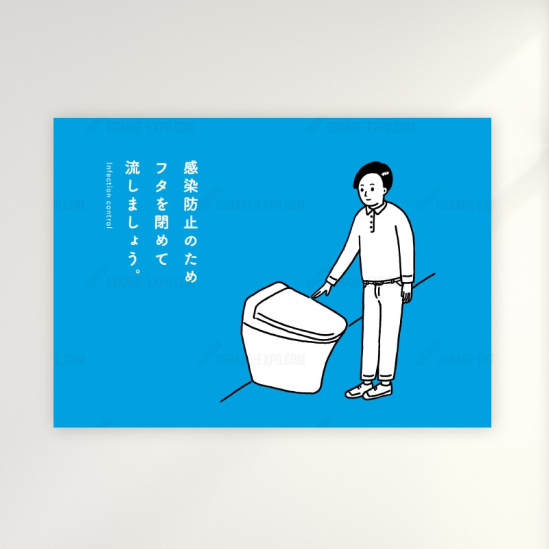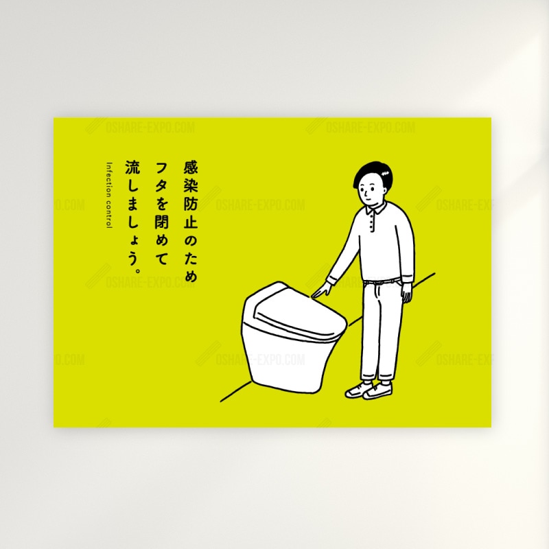 感染防止「トイレのフタを閉めて流しましょう」A ポップポスター ,ウイルス対策POP・ポスター関連,POP・ポスターOSHARE-EXPOおしゃれ什器 カッティング シール 販促pop おしゃれEXPO。