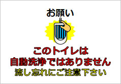 このトイレは自動洗浄ではありません 流し忘れにご注意下さいの貼り紙フリー貼り紙のペラガミ.com。