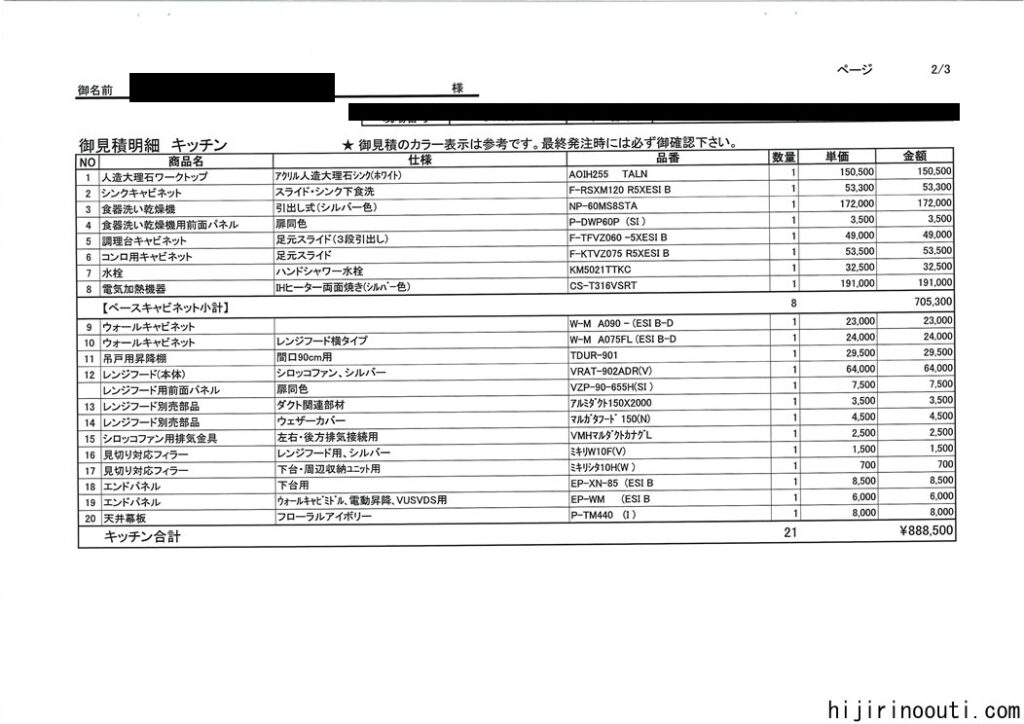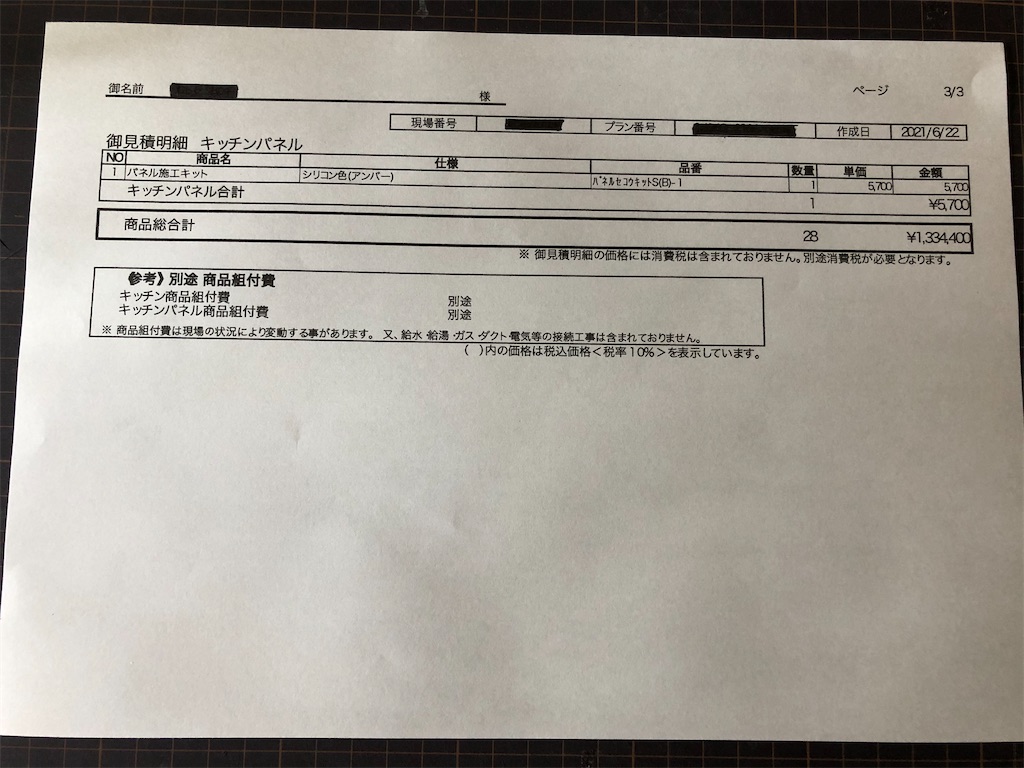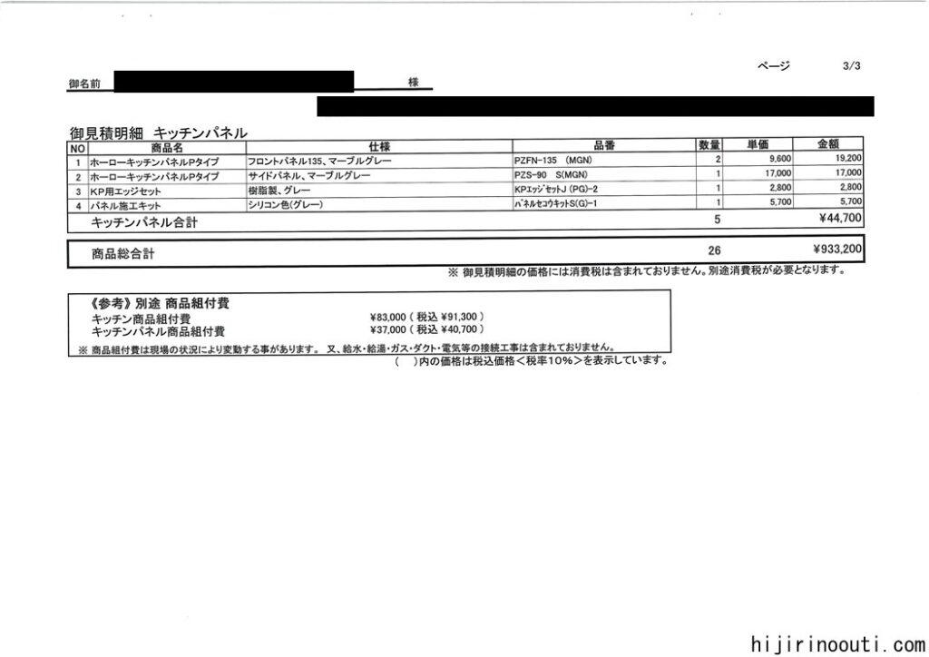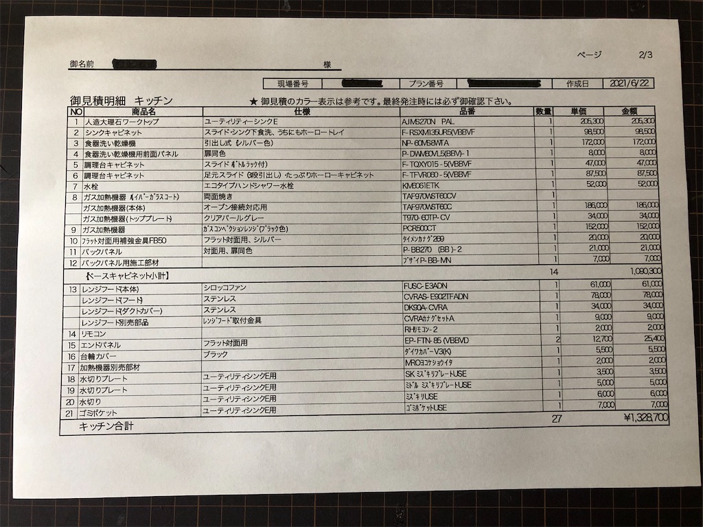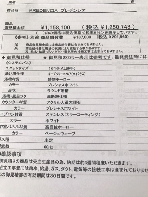タカラスタンダードの見積もりがきたよひじりのおうち。