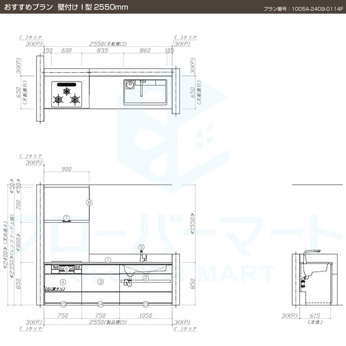 決算セール関西限定 タカラスタンダード システムキッチン レミューLEMUREおすすめプラン 壁付け I型2550mm2 —クローバーマート。