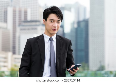 青年実業家がスマートフォンを使う写真素材285713414Shutterstock。