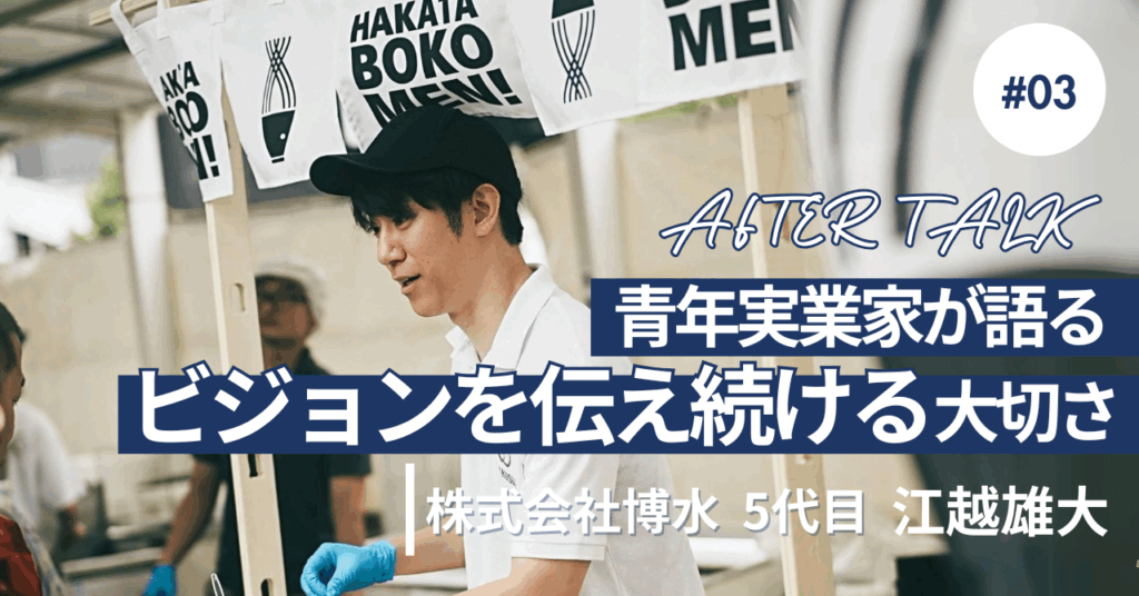 逃げた先に、自分と仕事の未来が待っていた 青年実業家が語る、ビジョンを伝え続ける大切さ」 株式会社博水 江越雄大アフタートーク vol.3NPO法人コモンビート。