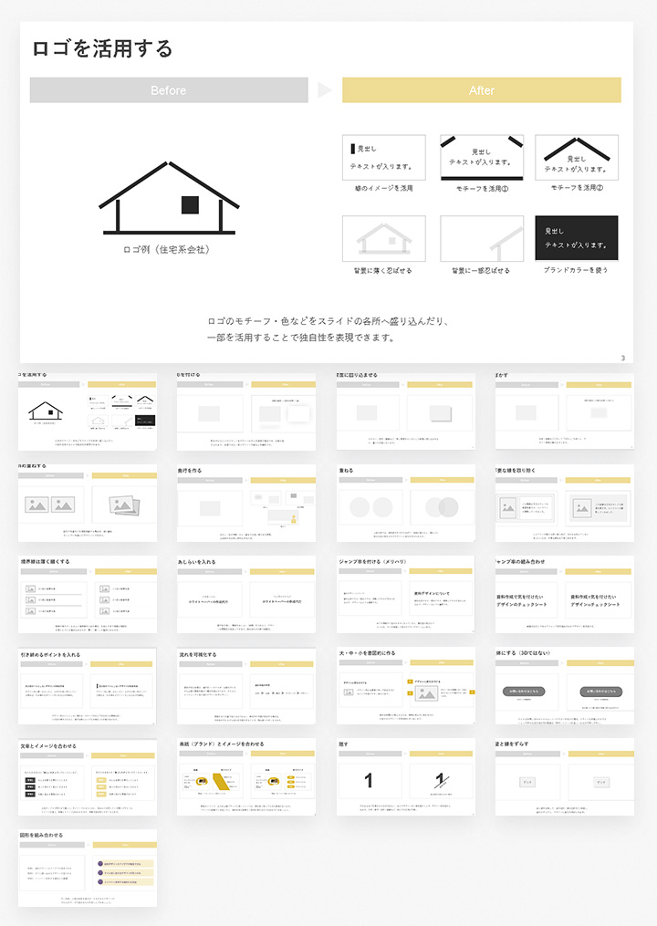 資料の図解は8パターンのテンプレートに当てはめて作成。